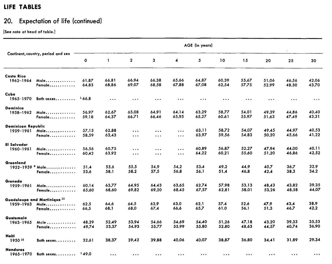 The only other Latin American countries for which the UN Population Division had to provide a rough life expectancy estimate were Honduras, Nicaragua, Paraguay and Brazil (though Brazilian data was published in the 1962 Yearbook). All of these countries, except Brazil, were at the bottom of the regional development scale at the time.