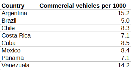 This is the rate of commercial vehicles per 1,000 population for selected Latin American countries:
