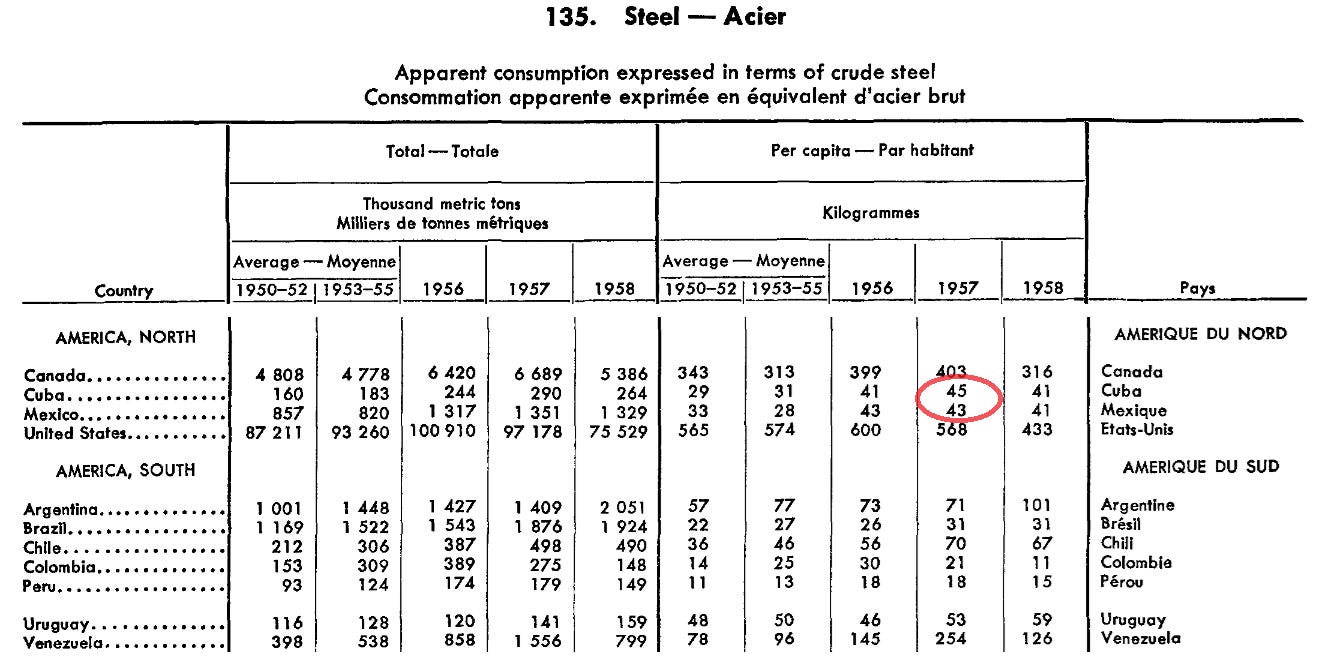 Cuban per capita consumption of steel was nearly on par with that of Mexico:
