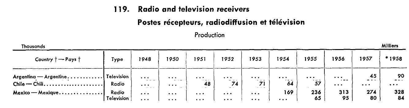 Incidentally, while Cuba was a large consumer of radios and television sets, other Latin American countries were producers of these devices: