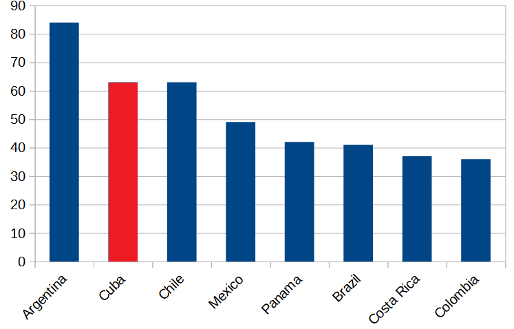 Cuba fares well compared to Chile, one of the four countries with a higher income, in this metric. However, it shows no difference compared to Mexico and just a 20% higher rate compared to Costa Rica and Panama.