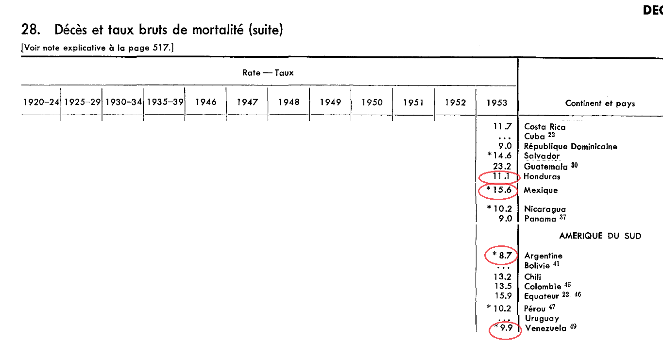 Except, those figures in the 32-40 range are very unreliable and not comparable to the rates for other Latin American countries. I’ve added the relevant footnotes to the previous screenshot, which mention the 1949 rate is unreliable: