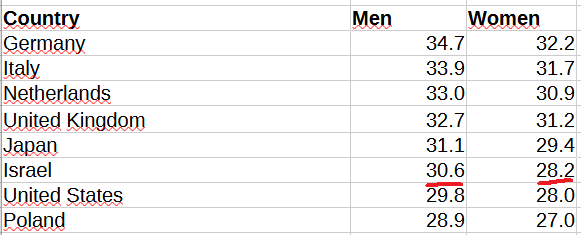 The second issue is that the CBS reports the median age at marriage for the whole population, not just those who married during the census year (2022). Since marriage ages in most developed countries (including Israel) were lower in previous decades, these figures are biased downward by the earlier marriages of older people.