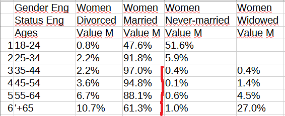 Did you happen to notice that each of the three never-married rate tables (Dati, Traditional-shifted, Secular-shifted) includes two additional columns besides the ones for 65+ women and 65+ men?
