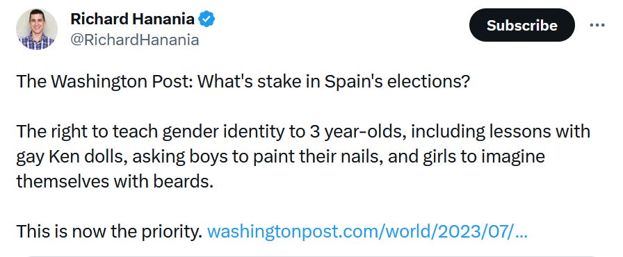 Explaining what the "woke" Spanish party is to Richard Hanania