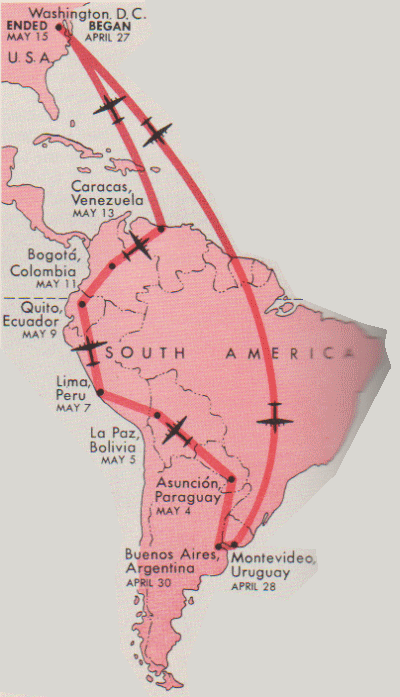 Nixon dutifully arrived at his first stop in Uruguay on April 28, and continued his tour without major issues until his arrival in Lima, Peru, on May 7: