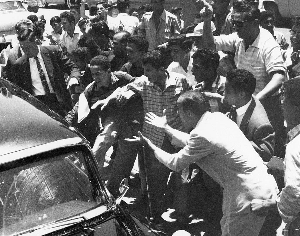 No, this is not a metaphor for a proposed rapprochement between the US and the Maduro regime. This was an actual historical event that took place in 1958 in Venezuela, in which Richard Nixon played a central role, years before his groundbreaking visit to China.