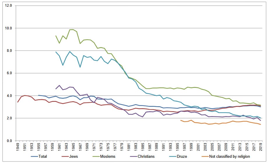 In my last post I analyzed fertility data for Arab Israeli cities and found out that median income impacts Arab Israeli fertility negatively (as expected from the literature), culture and lifestyle unsurprisingly have an effect on fertility, and lastly: it’s very hard to figure out whether religiosity has any effect and in what direction.