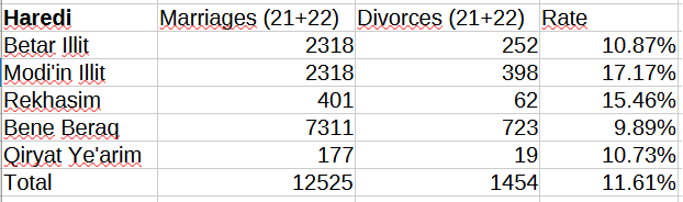 This confirms “wherever they live“. American Haredis appear to have a divorce rate of around 10%.